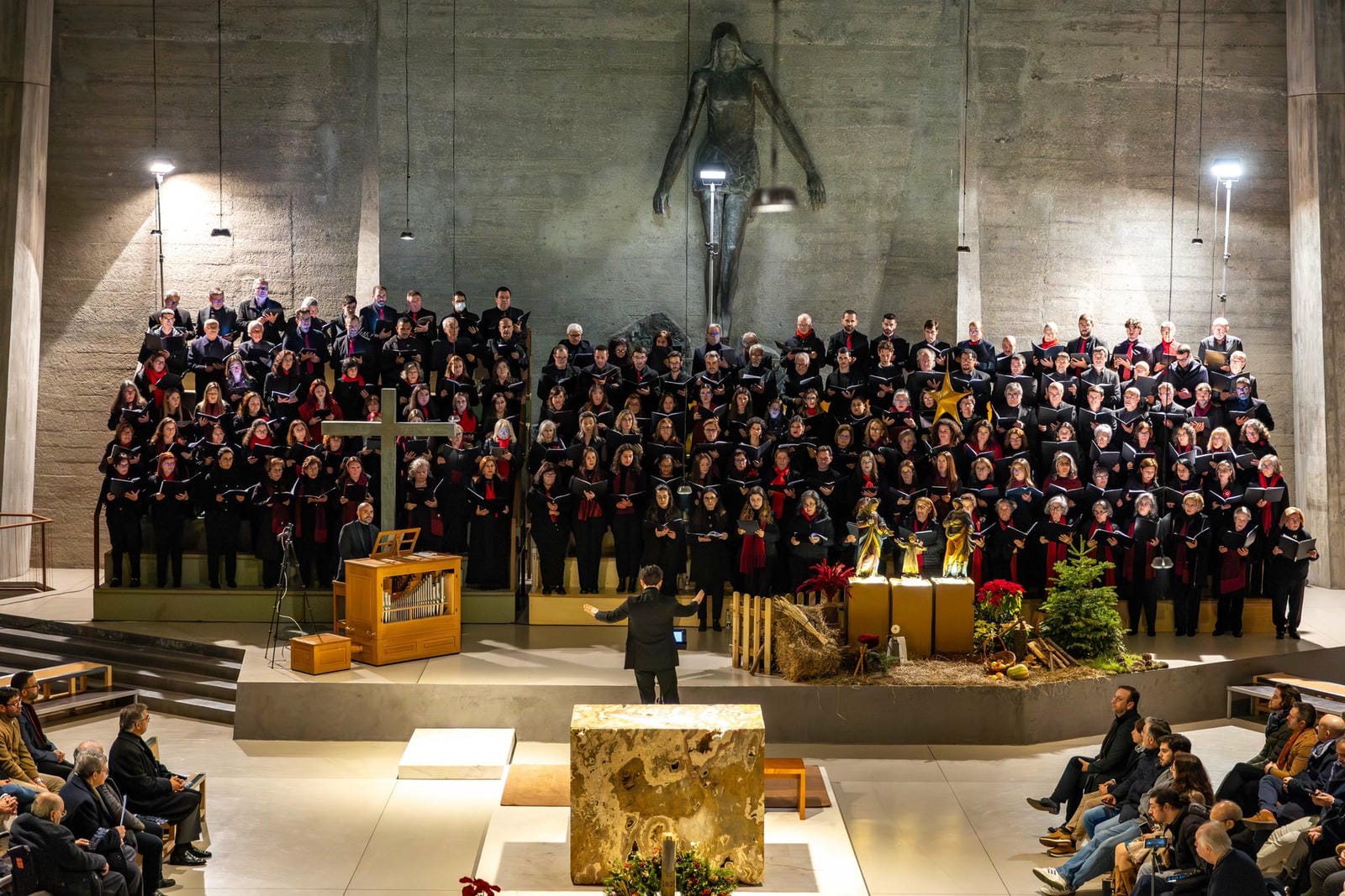 O concerto culminou com o tema Adeste Fideles, tradicionalmente atribuído a D. João IV, momento particularmente emotivo que contou com a participação do público. Este gesto simbólico transformou a interpretação final num verdadeiro momento de comunhão, unindo intérpretes e ouvintes num cântico coletivo de celebração e esperança.