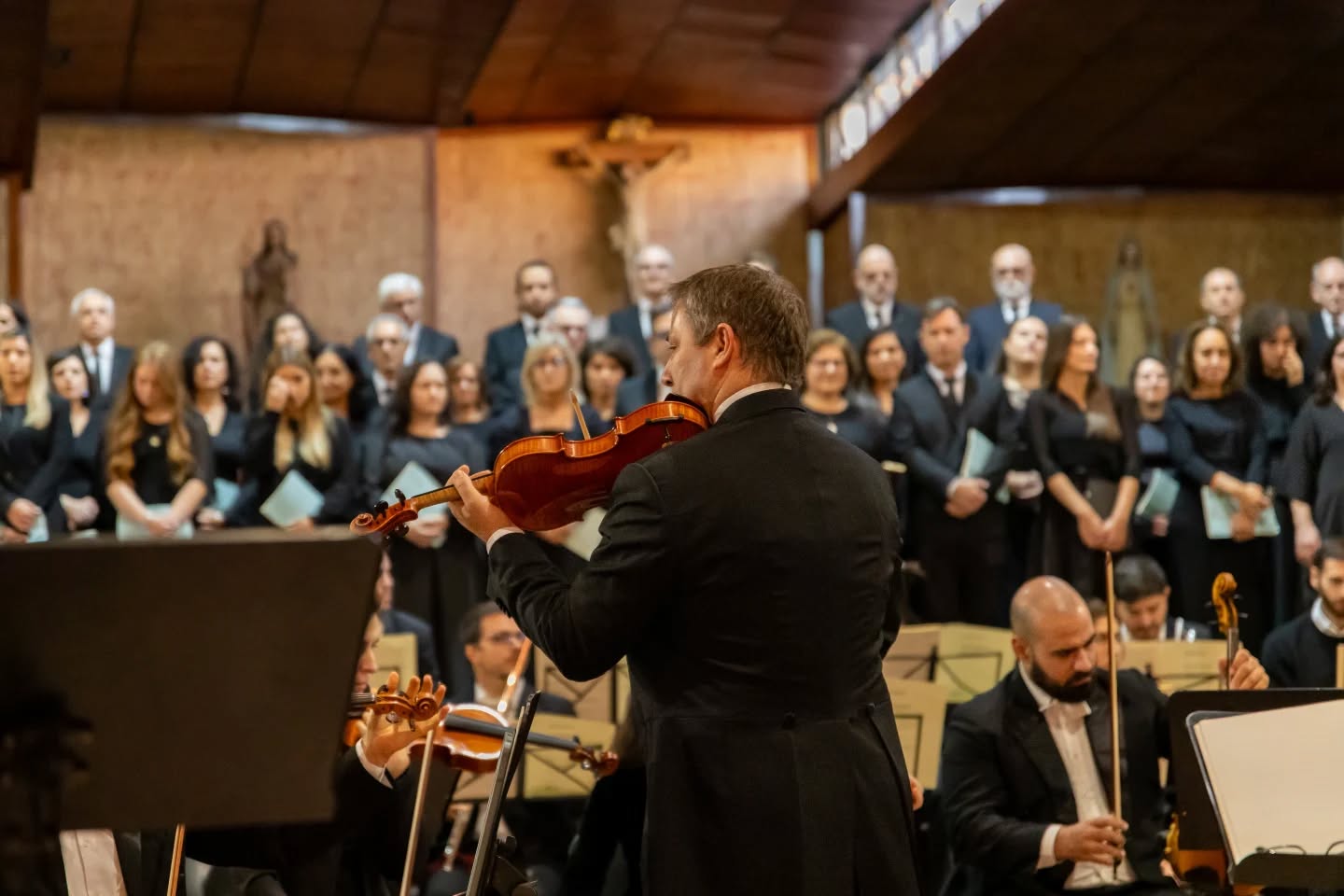 O Coro Polifónico da Lapa, dirigido por Filipe Veríssimo, e o coro da Academia de Música de Paços de Brandão, sob orientação de Catarina Marinheiro, revelaram coesão e expressividade determinantes para o impacto do desfecho.